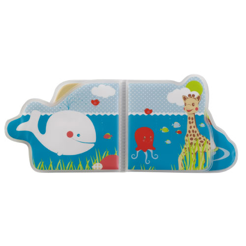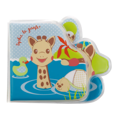 楽しいおふろタイム!キリンのソフィーとかめのマーゴが水遊びをするカラフルな8ページの絵本です。赤ちゃんがお話を想像しながら遊ぶことができます。音のなる仕掛け付き。お手入れが簡単で清潔さを保つことができるEVA素材です。